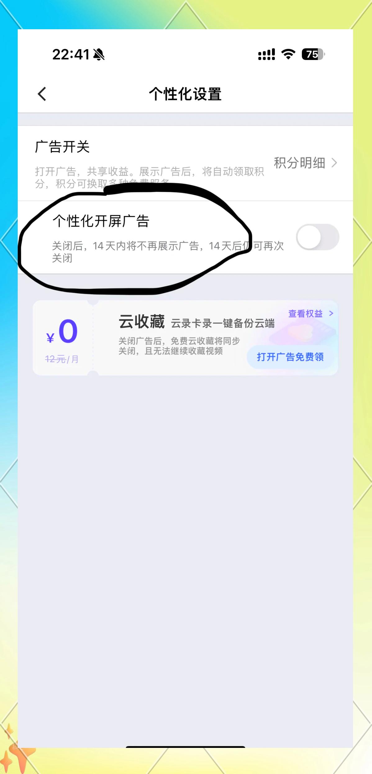 關閉廣告后,系統會提示你14天內不會再展示廣告。14天后你可以再次關閉,但記住哦,關閉廣告后,一些免費的功能也會受到影響,比如云收藏。