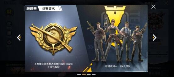 上賽季或本賽季達到皇冠段位且等級不低于40.組建加入一支4人戰隊
