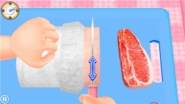 4、3D卡通風格游戲畫面,你能夠制作各種美味料理,從最基礎的食材開始處理;