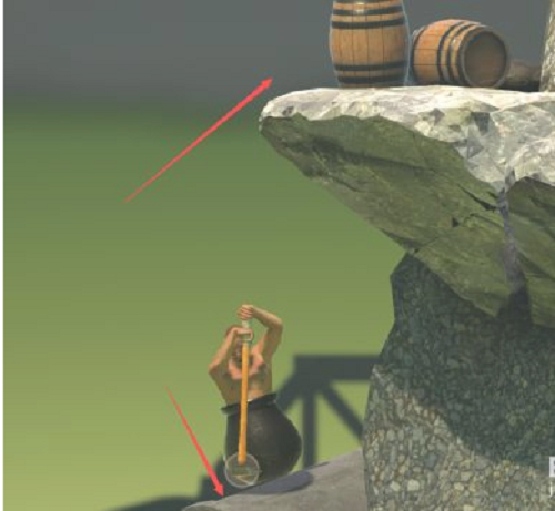 1、游戲一開始,只有你一個裝在罐子里的人和一個榔頭。你可以左右晃動旋轉(zhuǎn)榔頭,比如將榔頭朝下。