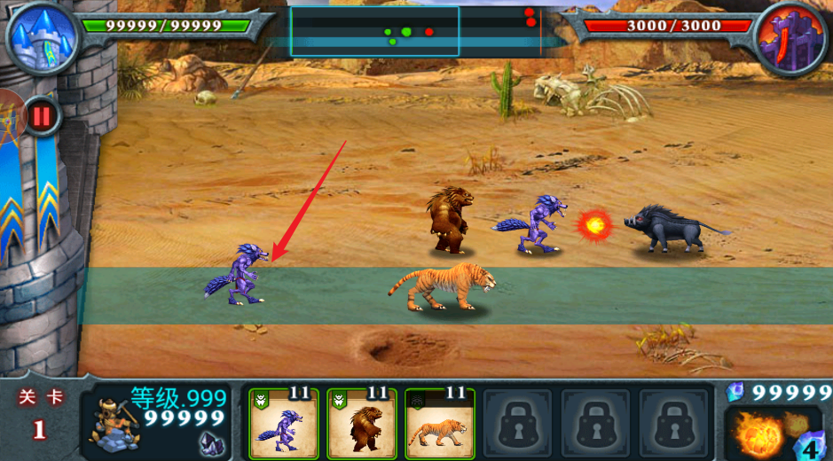 5、消耗資源后,將猛獸卡牌拖入戰場,即可自動對敵發起攻擊。