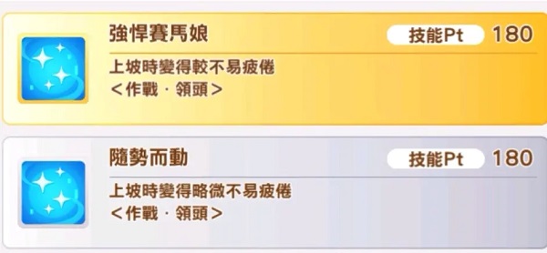 大家基本都有的后追馬娘,固有很不錯,只是后追馬娘比較依賴的直線一口氣在這次大賽中效果沒那么好。另外育成黃金船的小伙伴不需要學五覺技能,沒用。