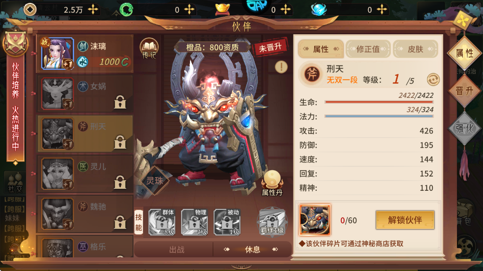 被動技能:大司命100%免疫石化與混亂,并且增加等級*0.8的法攻屬性