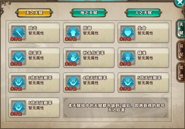 天多為常規(guī)屬性加成和天運(yùn)概率加成