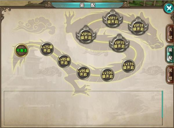 天賦只有在裝配界面裝備后才會(huì)獲得天賦屬性,每個(gè)角色最多可解鎖10個(gè)天賦裝備孔,前6個(gè)的天賦裝備孔激活條件需要角色到達(dá)一定等級(jí)時(shí),并花費(fèi)綁定元寶解鎖(綁元不足時(shí)可用元寶)。后4個(gè)天賦裝備孔需要角色的VIP等級(jí)到達(dá)對(duì)應(yīng)條件時(shí)并花費(fèi)元寶解鎖。