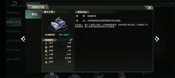 聯盟軍和晉升者的建筑部施工工地的生命和護甲都是:5970血,84甲