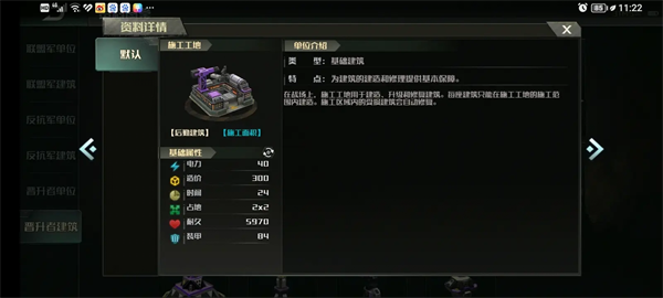 解鎖建筑:施工工地上限2,突擊車工廠上限2,特種車工廠上限2,空軍工廠上限2,船塢上限2,基礎防御塔上限3,炮塔上限2,防空塔上限4,海上防御塔上限3