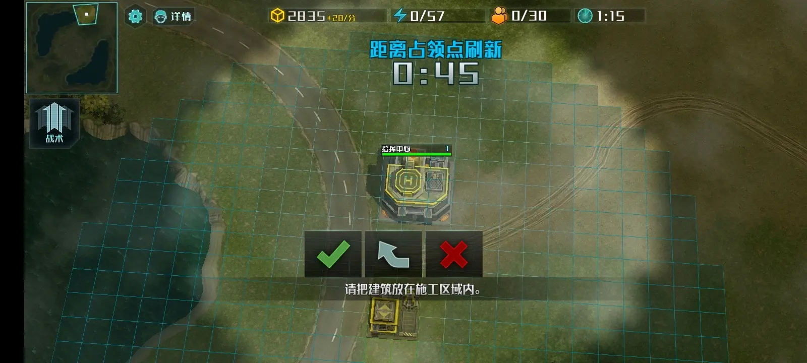 第一座施工工地只能建在指揮中心一定范圍內具體如圖: