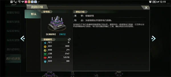 2級:0度電,400錢,48秒,需要至少1座施工工地,1座發電站,2座補給中心才能解鎖升級