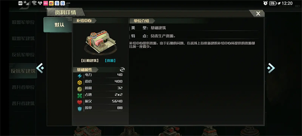 1級:0度電,1000錢,40秒(國服的指揮中心是不能重建的,但國際服可以,具體的我也不了解,但這里只討論國服就沒必要深究了)