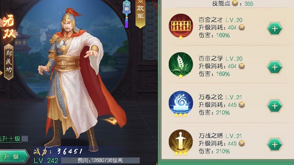 技能點(diǎn)也可以在校場中獲取或者使用技能點(diǎn)包,使用后獲得的技能點(diǎn)可以升級(jí)技能等級(jí)。平衡屬性的大臣可以根據(jù)圣上們的自己的喜好選擇升級(jí)建議優(yōu)先升級(jí)名臣星級(jí)較高的屬性,因?yàn)樾羌?jí)高的緣故初始的技能傷害也就高于其它3項(xiàng)。