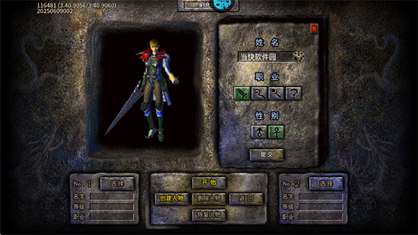 2、創建你的人物,選擇職業、性別,再取一個ID,完成后點擊開始;