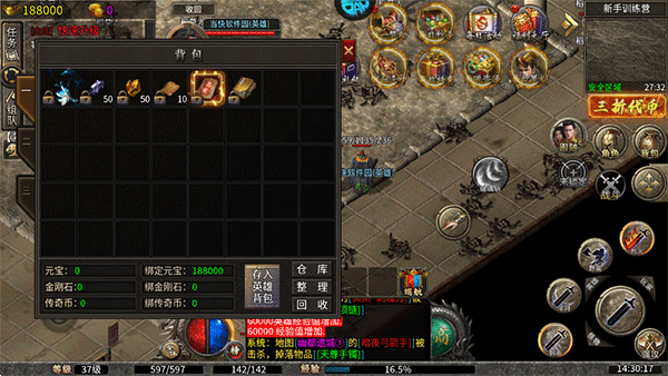 6、刷怪獲得的道具獎勵可以點擊屏幕右側的背包以查看。
