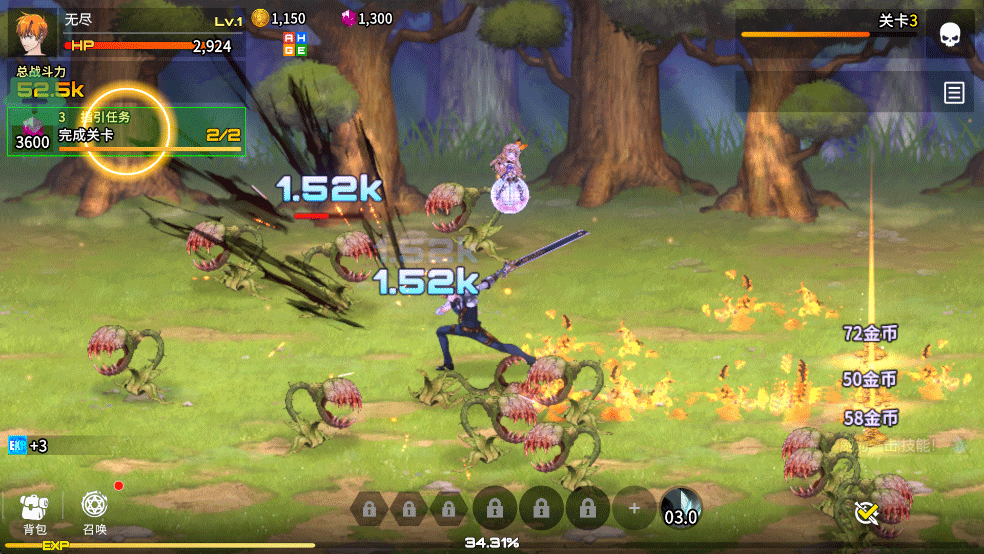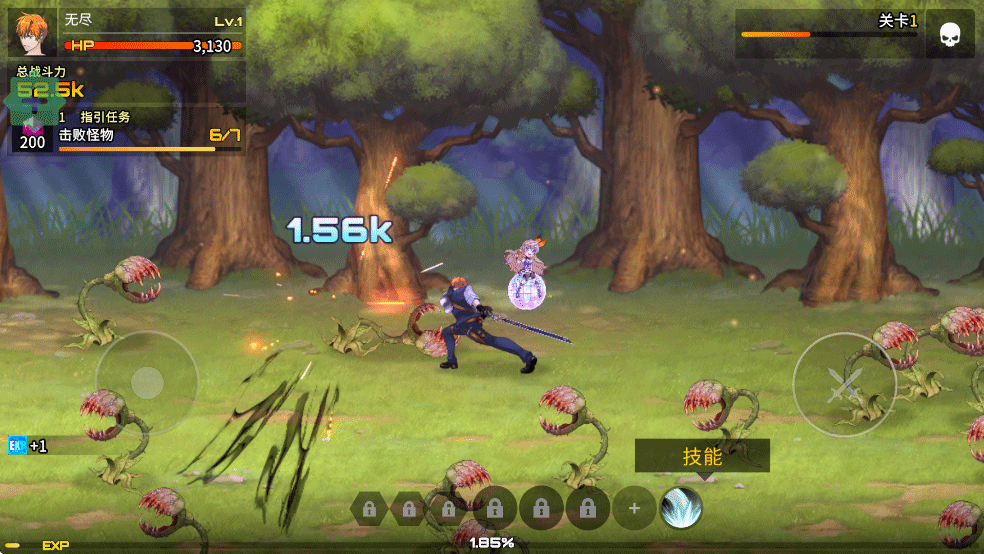 2、在戰(zhàn)斗中,玩家可以通過點擊右下角的攻擊按鈕來對敵人發(fā)動普通攻擊,同時也能使用技能鍵釋放強力技能。
