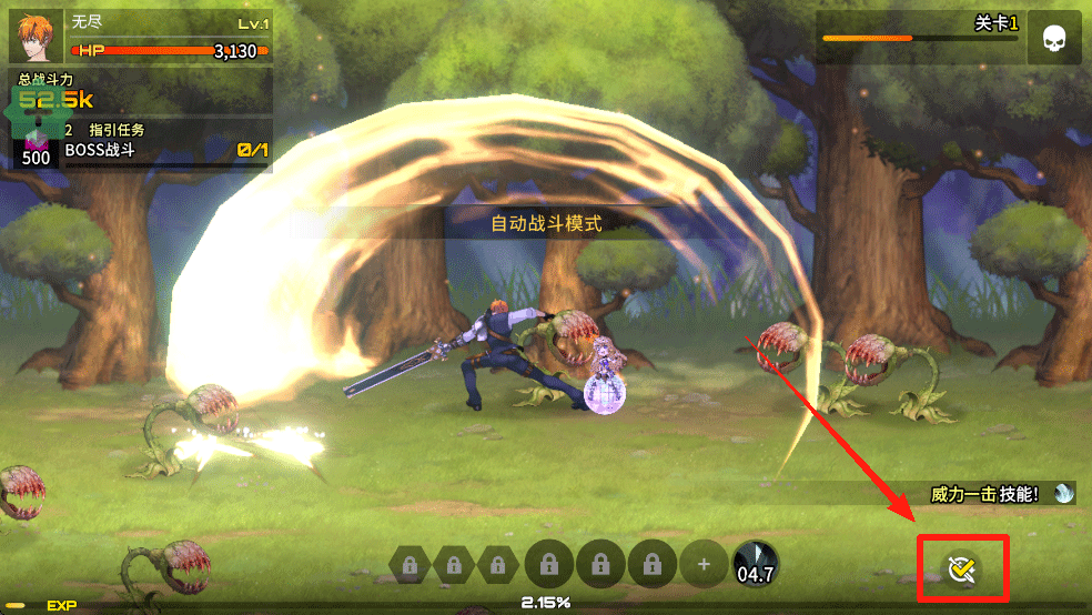 3、如果想輕松一點,也可以開啟“自動攻擊”模式,讓角色自動完成戰(zhàn)斗。