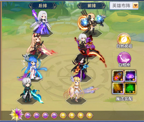 2、治療:首選月神露娜,治療的同時(shí)給隊(duì)友加攻擊和暴擊率,神佑效果固定第二回合附加無(wú)敵,可以說(shuō)是治療英雄天花板。其次可以選天使拉斐爾、天照、海洋女神。天使拉斐爾治療量高但是效果比較單一,相對(duì)來(lái)說(shuō)小R玩家用天照和海洋女神即可,天照的概率復(fù)活和海洋女神免傷的效果性?xún)r(jià)比更高。