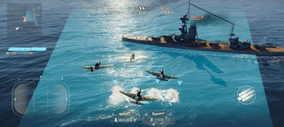 不直接操縱艦體,而是指揮輪流出擊的艦載機(jī)編隊(duì)。魚雷機(jī)投雷(傷害高、較分散、易躲避,適合打擊大型笨重目標(biāo))。轟炸機(jī)投彈(范圍覆蓋、無(wú)法閃避、傷害平均,適合打擊高機(jī)動(dòng)驅(qū)逐艦)。