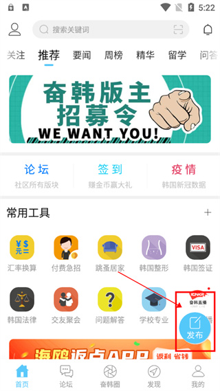 1、打開軟件,來到主頁,點擊右下角的“發布”;