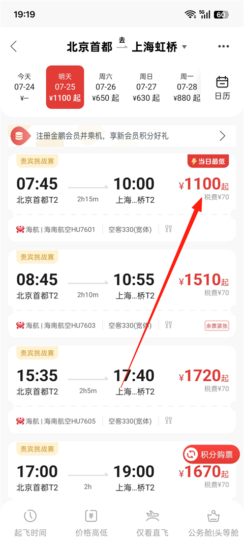 5、支持以現金購買海南航空及其旗下航空公司的機票和升級航班。