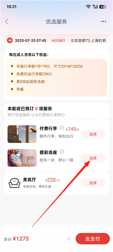 新增預約選座,提前選定心儀座位,助您旅行一路順心。