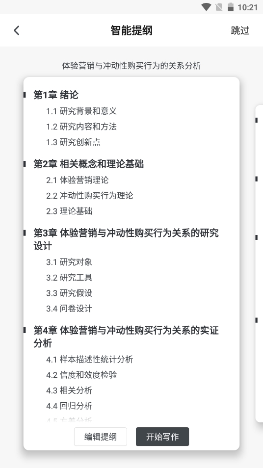 2、然后軟件就會為用戶生成提綱;如果點擊右上方的【跳過】將不享受智能提綱推薦;