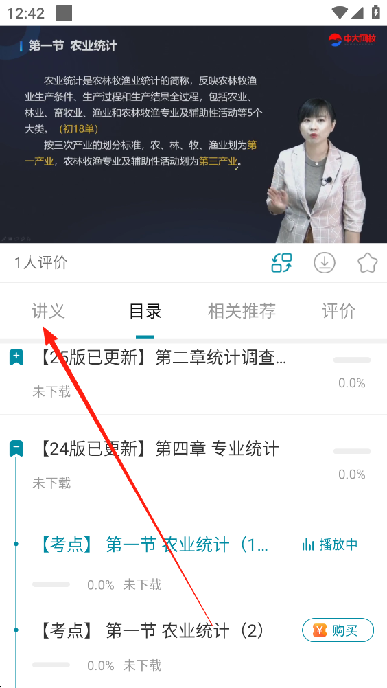 1、打開初級統計師準題庫App,登錄之后,點擊播放要觀看的課程