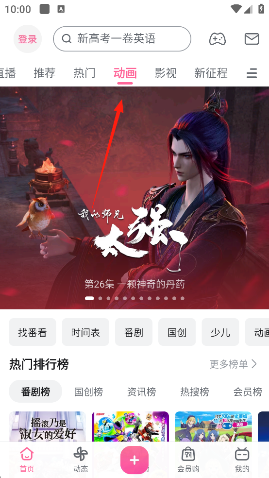1、打開嗶哩嗶哩動畫App,在首頁中點擊動畫界面,并選擇你要觀看的動畫