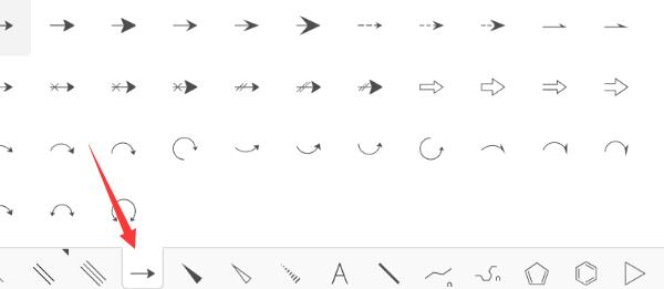 2、長按畫板下方工具欄的【箭頭工具】,可以顯示所有箭頭樣式,您可以選擇需要的樣式點擊使用。