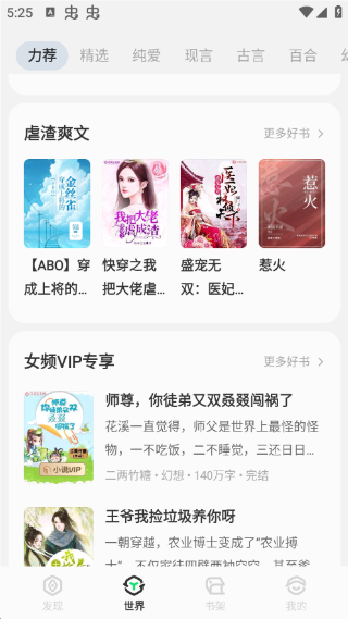 - 男女頻分類: 清晰劃分男頻(玄幻、都市、科幻)與女頻(言情、穿越、耽美)等熱門頻道,精準滿足不同讀者的偏好。