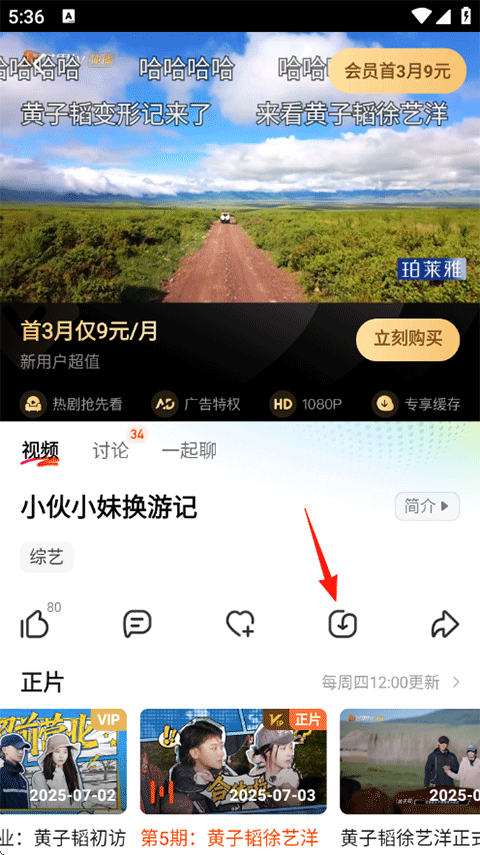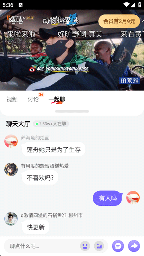 2、進入播放頁后點擊一起聊,和大家一起實時觀看,交流影片內(nèi)容;