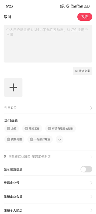 2、你可以在這輸入【有沒有一起去打螺絲、或者急招】點擊發(fā)布即可
