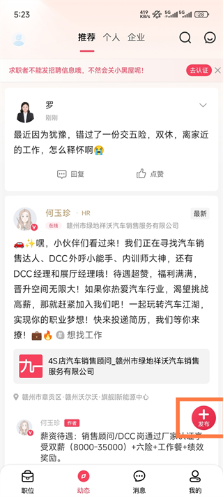 1、在動態(tài)板塊點擊發(fā)布